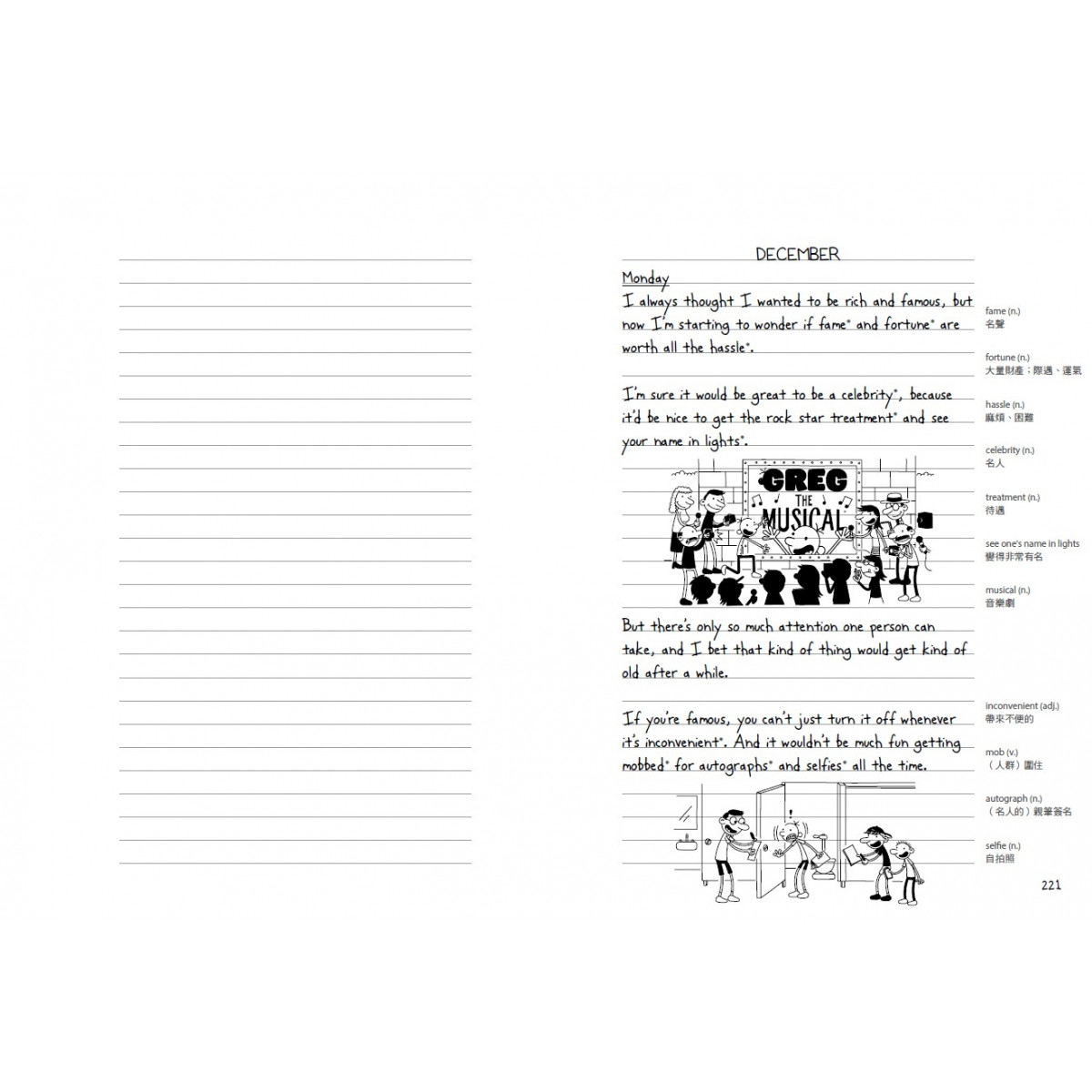 除了從看影片學英文之外,學英文的朋友也能透過書本體會學習的樂趣。學英文就是要用輕鬆自在的方式才能學得快樂、學得長久,我們也能從葛瑞身上學習到很多生活上的樂趣以及美國中學校園無厘頭的生活!