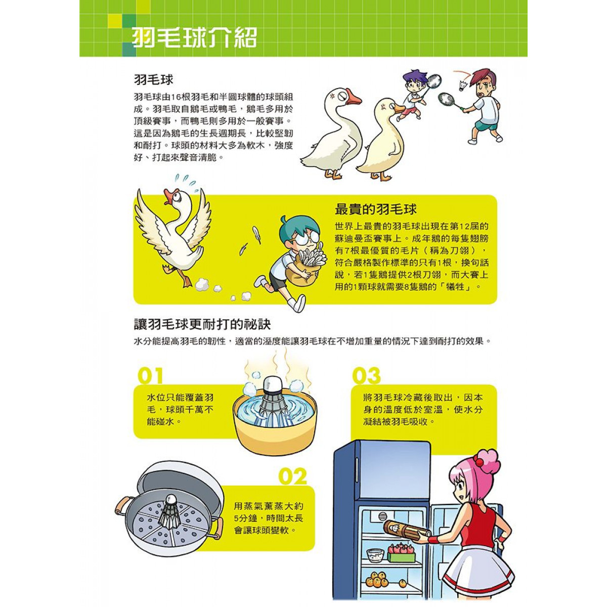 設有「運動小百科」單元,藉由松澤羽球社成員的生動對話和淺顯易懂的文字,介紹羽球歷史、重要賽事、羽毛球製作過程、運動熱身、運動對身心的好處、敏捷梯訓練、自製羽毛球等,除了羽球知識之外,也讓小朋友有系統的學習運動相關知識。