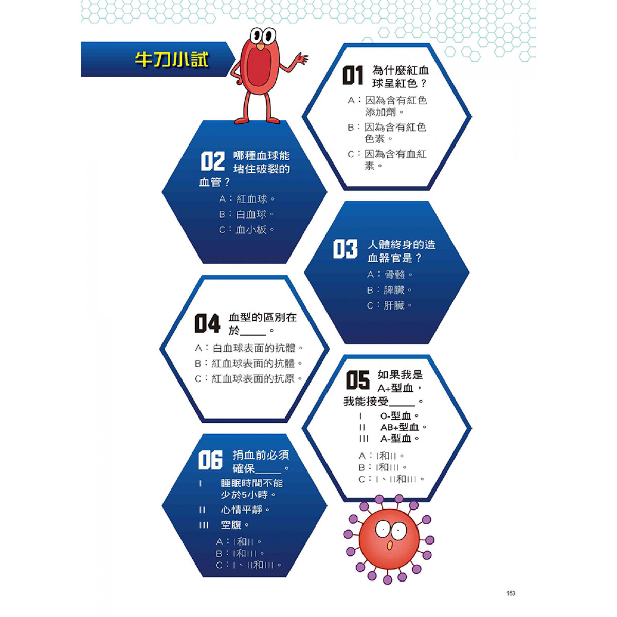 設有「人體小百科」單元,藉由X萬獸探險隊隊員的生動對話和淺顯易懂的文字,來介紹心臟與血液的小常識,以及血液的成分與作用、血型的意義與ABO血型系統、貧血的症狀與原因、血管的種類與作用、心臟與血液循環的關係、血壓高或低對人體造成的影響等超炫常識,讓小朋友有系統的學習。