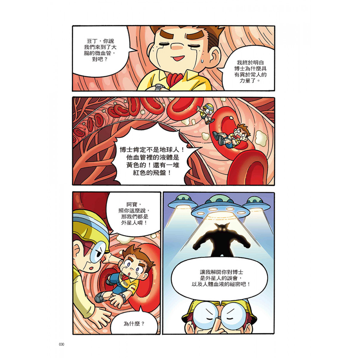 圖像式漫畫結合生動可愛的人物和驚險刺激的故事編排,讓你彷彿與主角一同探索神奇的人體,加深小朋友的印象。並且藉由團隊合作的故事,建立勇於挑戰與冒險的精神,並藉此培養關懷自然與生命的胸襟和體貼他人的個性。