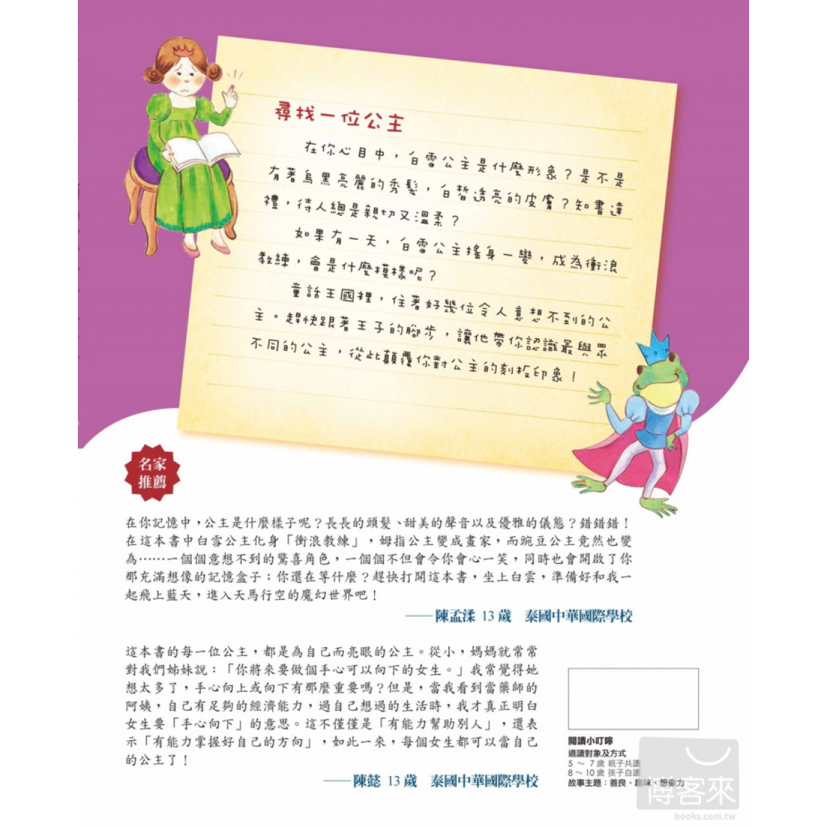 童話王國裡,住著好幾位令人意想不到的公主。趕快跟著王子的腳步,讓他帶你認識最與眾不同的公主,從此顛覆你對公主的刻板印象!