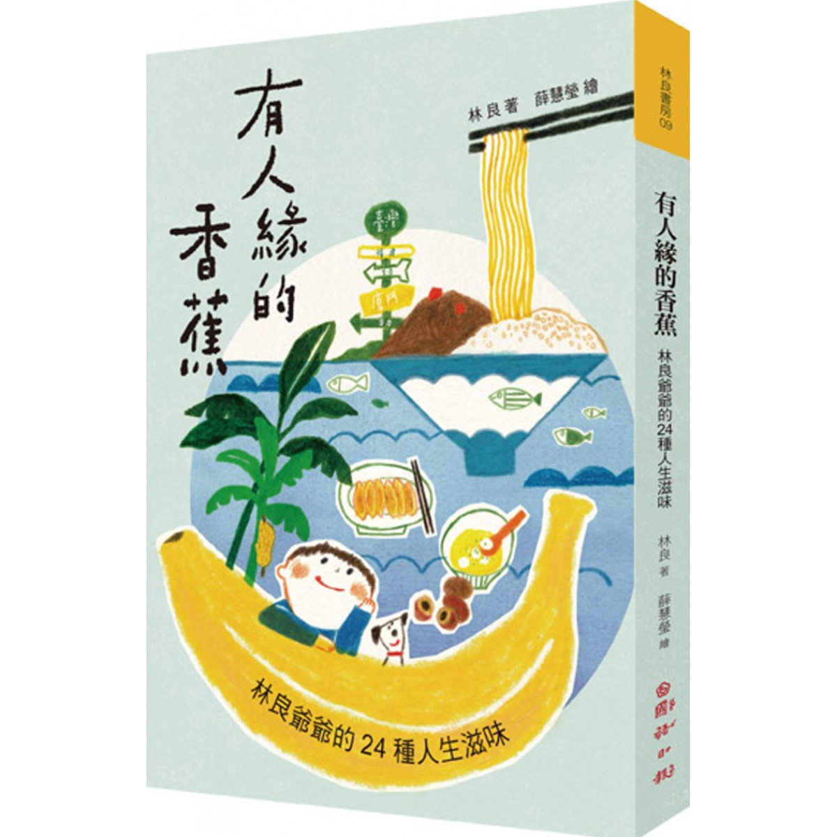 ◆封面插畫來自「金蝶獎」榮譽獎得主薛慧瑩。設計概念:用一個碗公,把林良爺爺喜愛的食物盛裝起來;將咖哩飯和土地的意象結合,並融入海洋的色彩和意念,象徵著作者輾轉流離的童年時光,以及這些日子裡的飲食記憶。主視覺的香蕉則是林良爺爺口中「有人緣的好水果」,顏色美麗,看起來乾淨,吃起來香甜,而且營養豐富;在拮据的青年時期,作家甚至以兩根香蕉當作一日兩餐,平安度過一整個月,所以特別有感情。