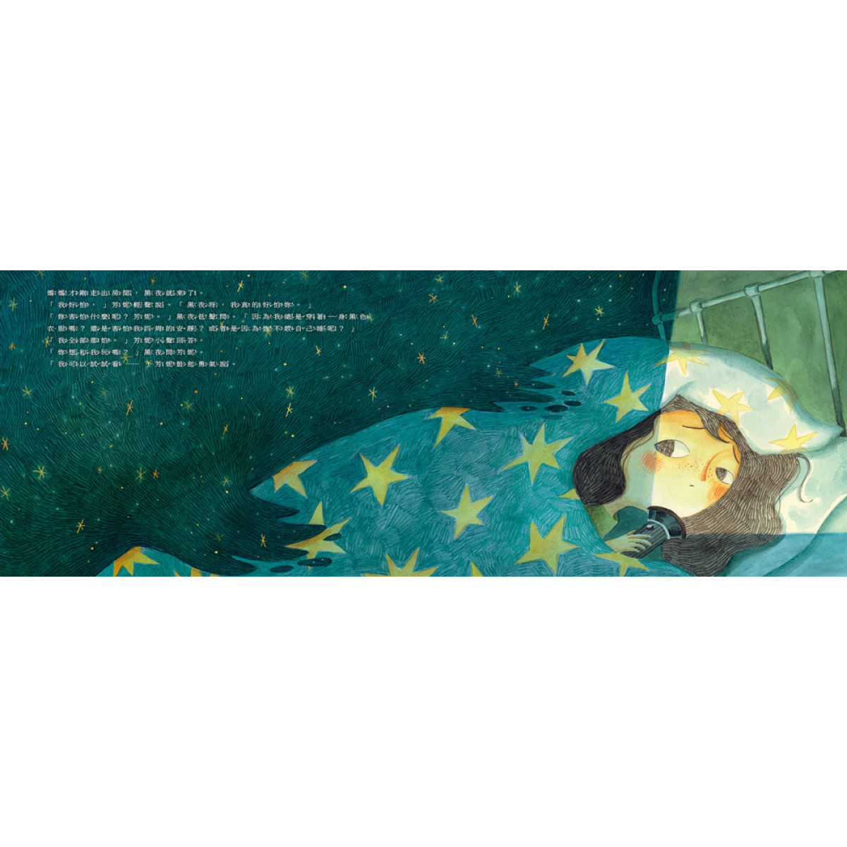 每當夜晚來臨,芳妮總是感到非常害怕。因為黑夜會吞噬一切,不只讓世界失去其他色彩,也聽不見鳥叫聲,看不見樹木搖曳的舞姿。看著每晚都害怕不已的芳妮,媽媽給了她一個不一樣的建議,要她試著和黑夜說話,說出自己對黑夜的害怕,也許,黑夜也有很多話想說……