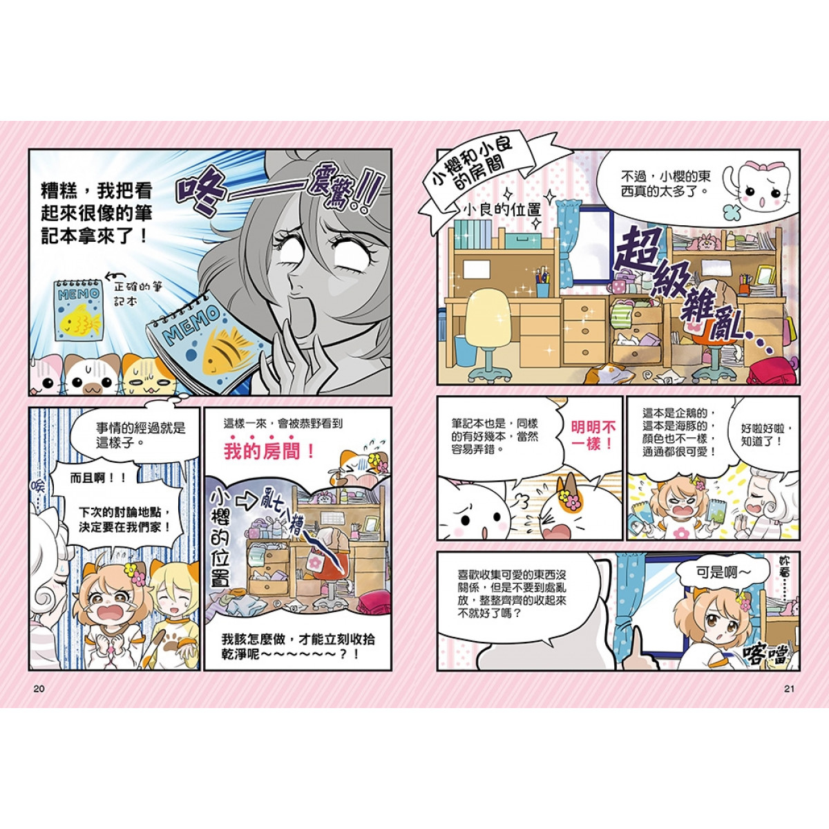 可愛的三花貓小櫻遇到不得了的大危機!班上同學約好要到家中討論作業,這樣一來,「小櫻(超級無敵亂)的房間」就會被她最喜歡的恭野同學看見,該怎麼辦才好?想要馬上動手整理,卻只能看著一堆雜物發呆,不知道要從哪裡開始下手……
