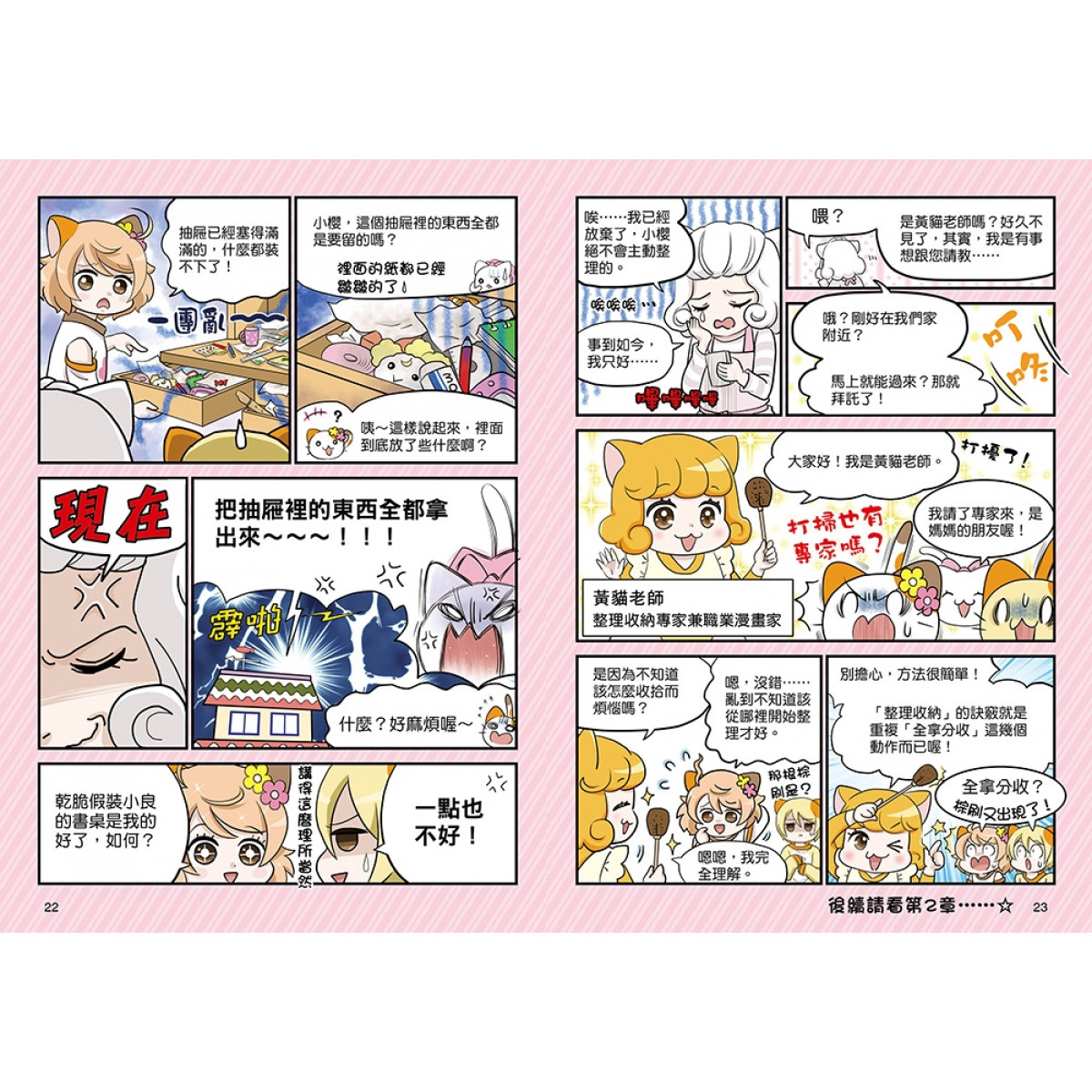 幸好,小櫻媽媽找了整理收納專家「黃貓老師」來指導大家整理家裡的方法,小櫻能透過這次澈底學會收拾的方法,讓恭野同學留下好印象嗎?一起來看看小櫻一家搞笑有趣又充滿勵志精神的整理收納大挑戰吧!