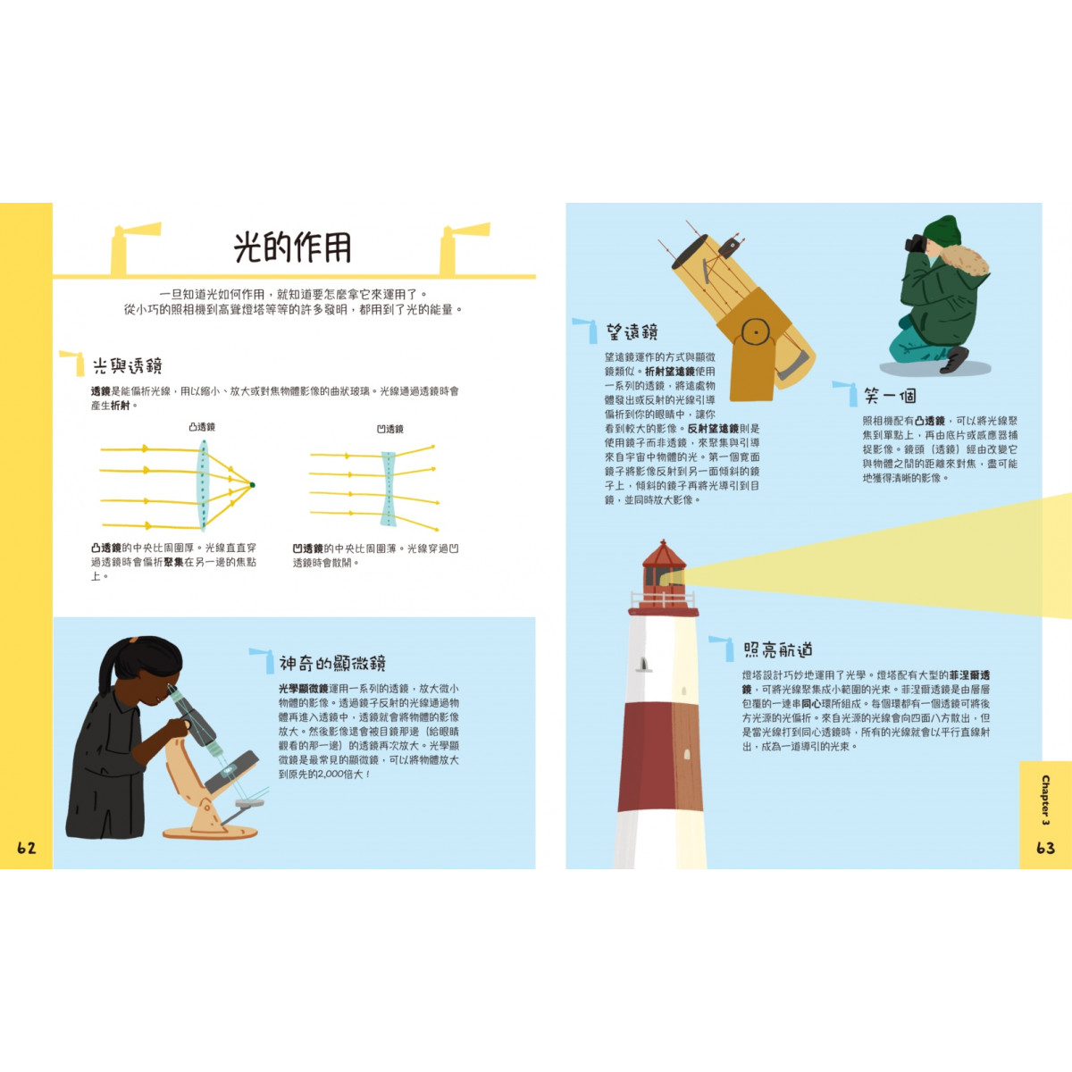 從宇宙的誕生,到我們周遭萬事萬物的運作法則,包括力與運動、能量與電、光與聲音……都是物理學研究的範圍。而生活中的許多發明,像是腳踏車、彈跳床、橋梁、飛機,也都隱藏著聰明的物理學應用!翻開本書,你將找到以下問題的解答: