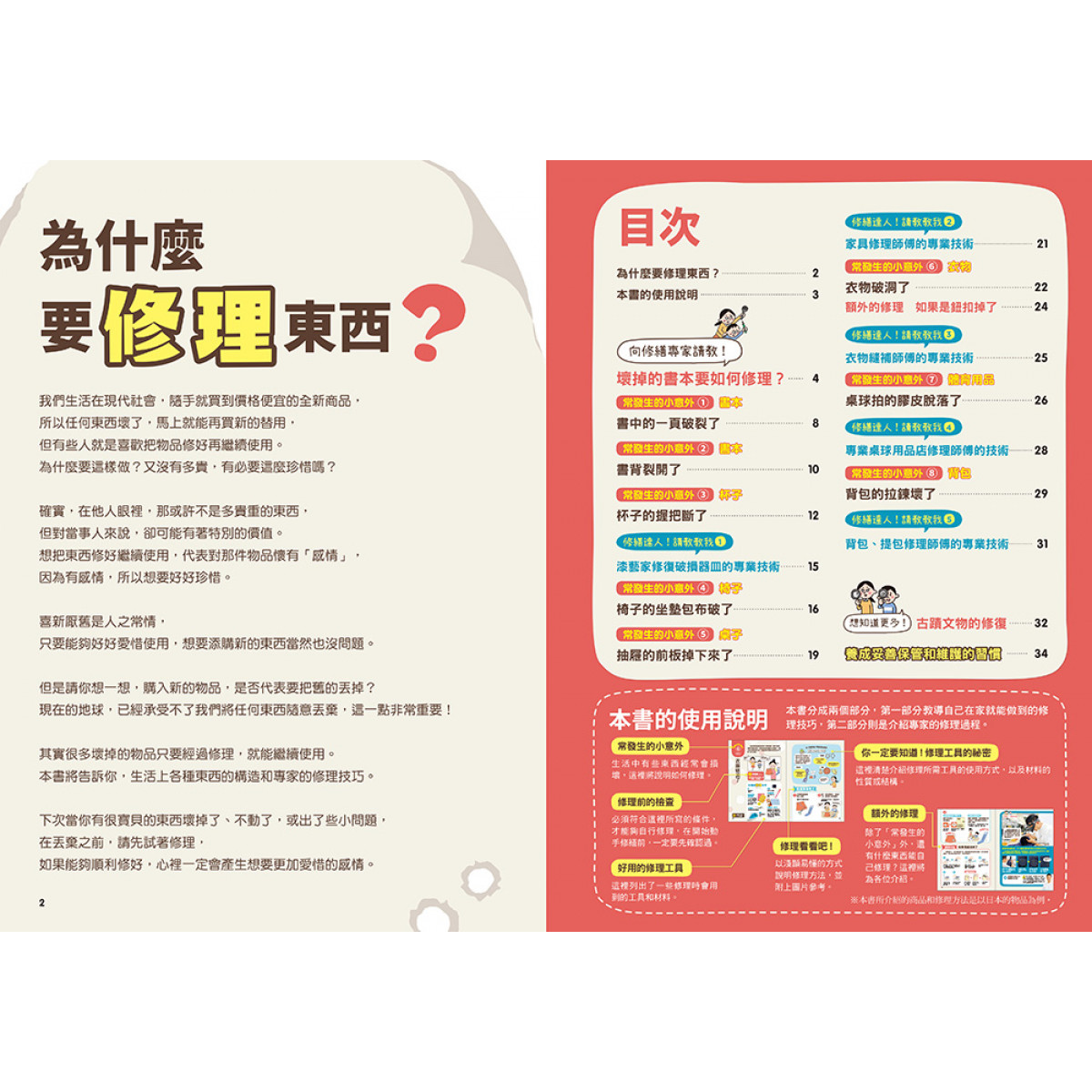 請別擔心!這套書籍化繁為簡,從工具到方法,清楚的圖文和職人現身說法,跟著步驟一起做,動手又動腦,修理物品將變得有趣又有成就感。大力推薦給想要動手修理生活用品的大小朋友,這會是一套很親切的新手上路維修指南!雖然是以孩子的角度為出發點來撰寫的書籍,但內容有許多維修知識,相信就連大人也不見得知道呢!
