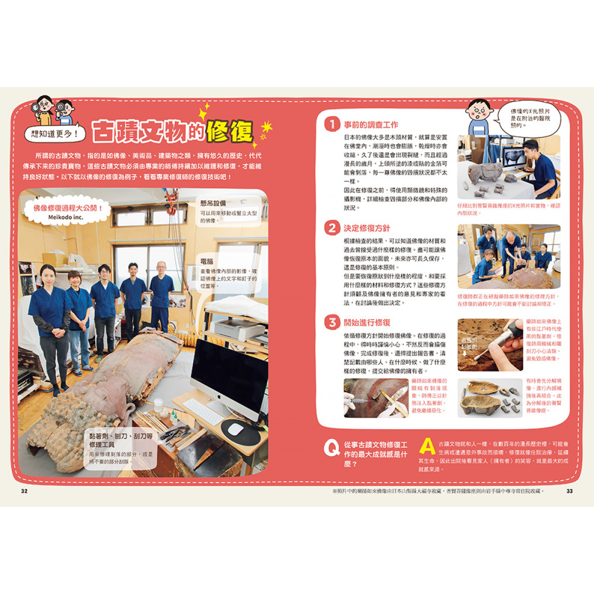 世界上沒有永恆不滅的事物,分分秒秒變化無常,所以人們才會對那些幾百、幾千年前保留下來的文物懷有敬畏崇拜之心。透過這本書可以知道,其實只要有良好的修復與維護,我們所珍惜的事物便可以保存得長長久久。——李品誼(旅日佛像修復師)