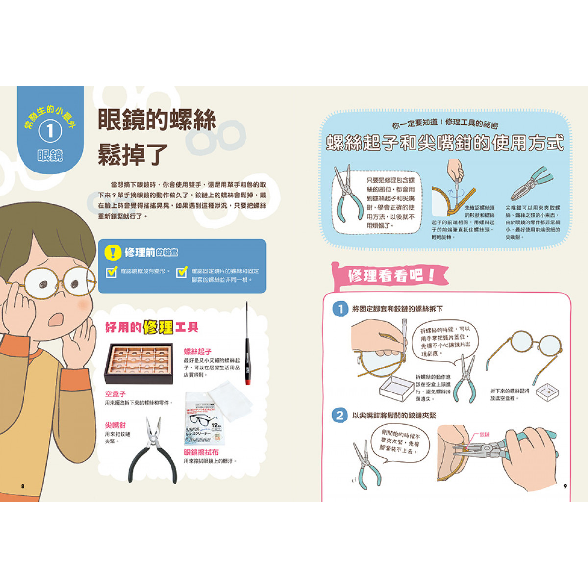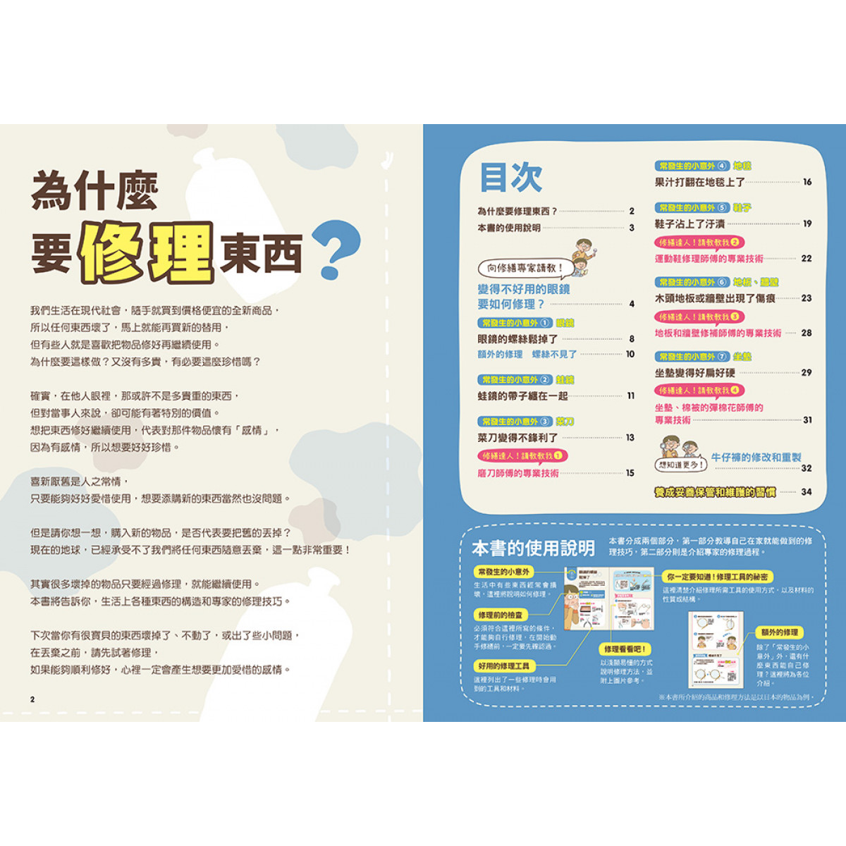 請別擔心!這套書籍化繁為簡,從工具到方法,清楚的圖文和職人現身說法,跟著步驟一起做,動手又動腦,修理物品將變得有趣又有成就感。大力推薦給想要動手修理生活用品的大小朋友,這會是一套很親切的新手上路維修指南!雖然是以孩子的角度為出發點來撰寫的書籍,但內容有許多維修知識,相信就連大人也不見得知道呢!