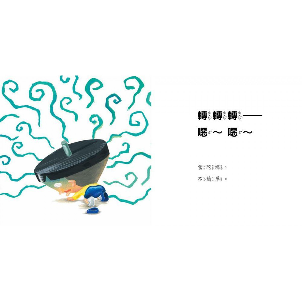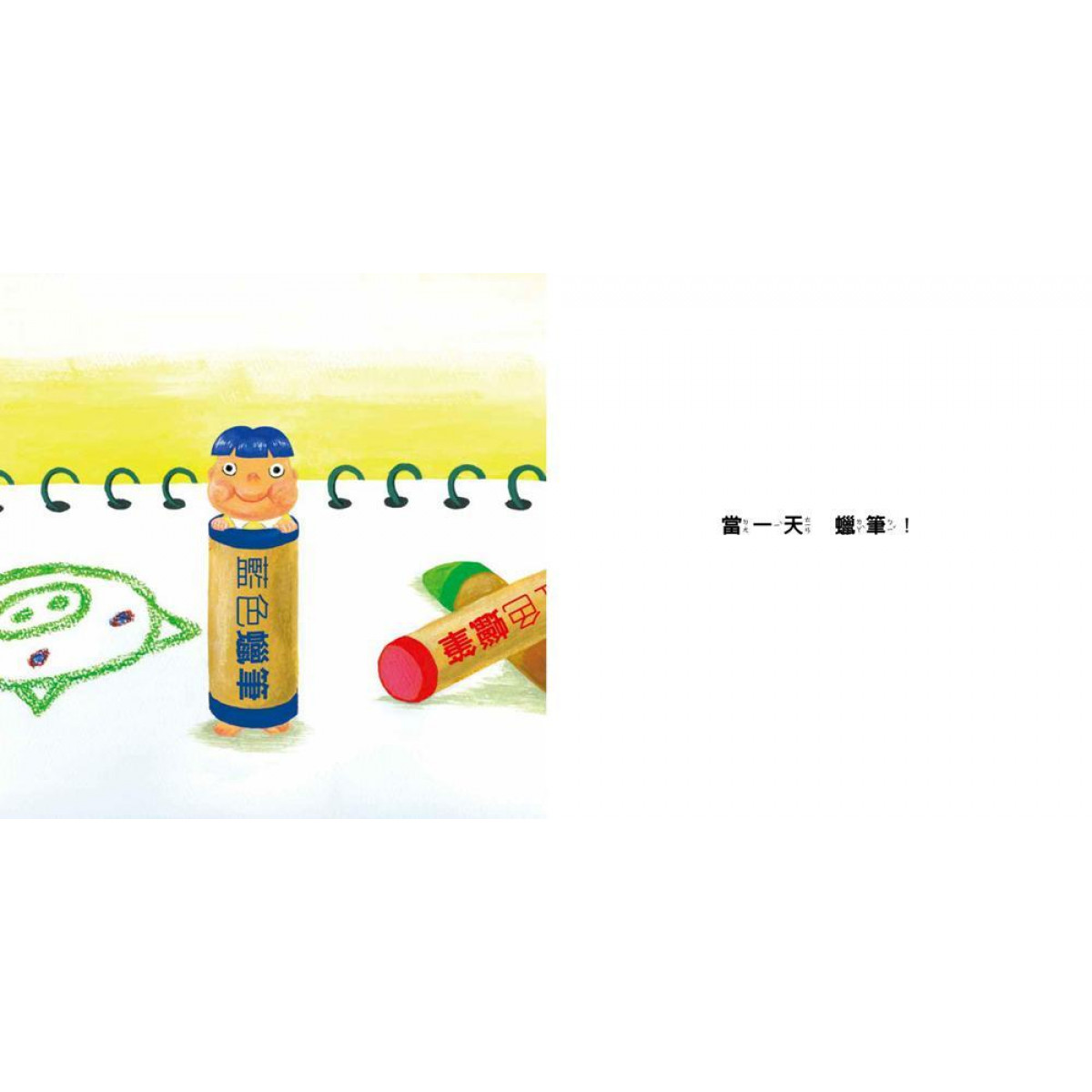 看故事中的小男孩變身成蠟筆、陀螺、著色本、積木、響板……等各種玩具,到底會發生什麼事?